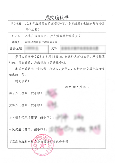 热烈祝贺河北泓航中标2025年农村综合改革项目—石井乡黄岩村太阳能路灯安装亮化工程。