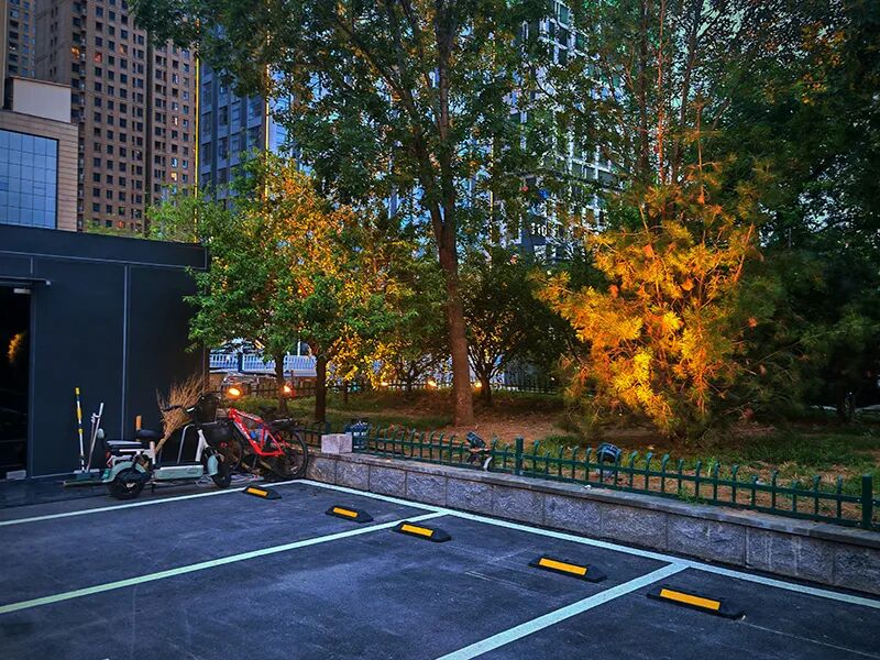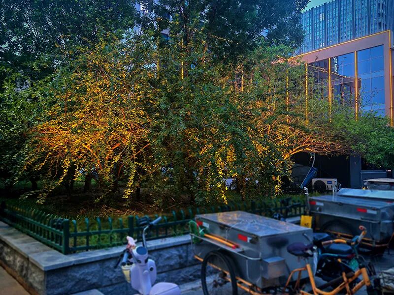 酒店前的绿化带采用投光灯进行亮化设计。投光灯的功率和照射角度确保既能充分照亮植物,又不会产生过度曝光或阴影不均的情况。