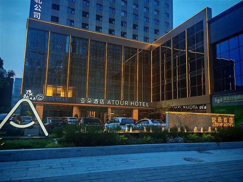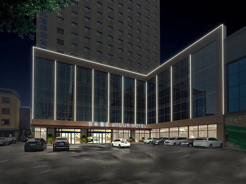 亚朵酒店的建筑风格独具特色,为了更好地展现其建筑线条与结构,我们在设计上选用了高品质的线条灯,能够清晰地勾勒出酒店建筑的外立面轮廓。