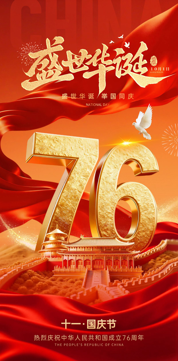 在这个特殊的日子里,让我们把最真挚的祝福献给亲爱的祖国:愿祖国山河锦绣,繁荣昌盛;愿人民安居乐业,幸福安康;愿我们每个人都能在祖国的怀抱里,追逐梦想,不负韶华。 国庆,是一个节点,也是一个新的开始。让我们带着对祖国的热爱,带着对生活的憧憬,继续携手前行,用奋斗书写更多精彩的篇章,让祖国的明天更加美好! |