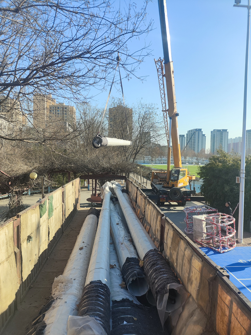 我们的施工人员已带着工具抵达现场,仔细清理施工区域,布管布线,为安装高杆灯做好充足准备。