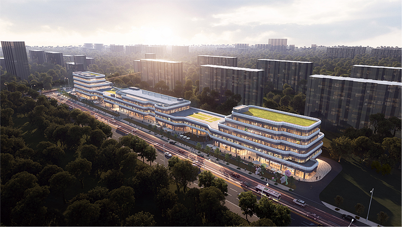 花鸟鱼虫休闲馆大面积的玻璃界面形成干净通透的展示面,边界的弧线构成建筑的体感,形式简洁,材质细腻大气。灯光在设计上延续建筑结构美学,精准展现建筑体态肌理,形成独具特色的"光带"。