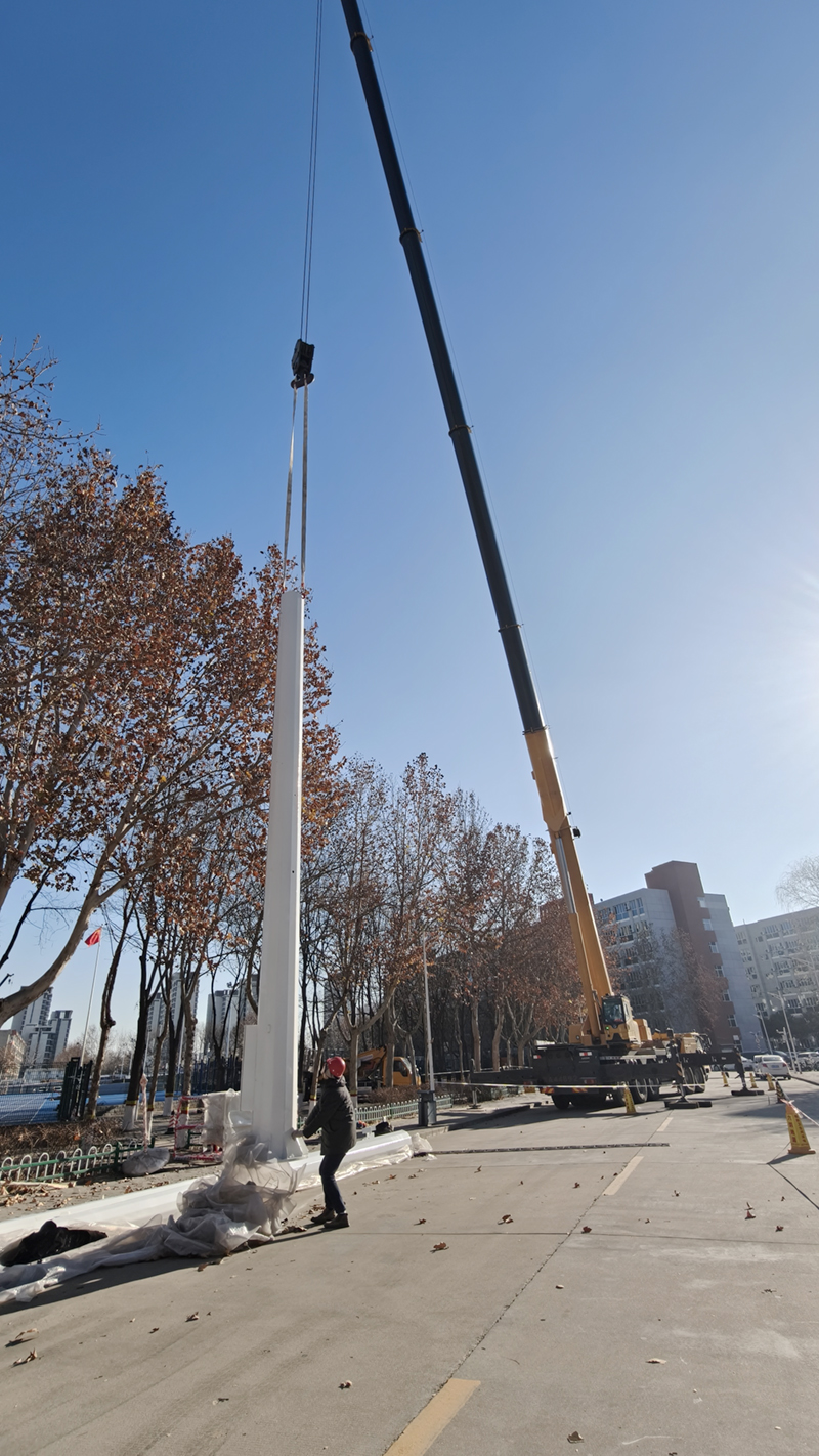 我们的施工人员已带着工具抵达现场,仔细清理施工区域,布管布线,为安装高杆灯做好充足准备。